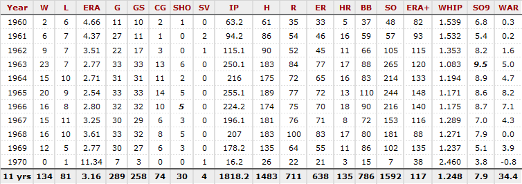 Threw No-Hitter against the Chicago Cubs on August 19th, 1965